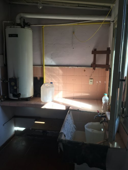 Lavadero con termotanque, pileta de lavado y estantes de guardado.-